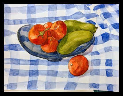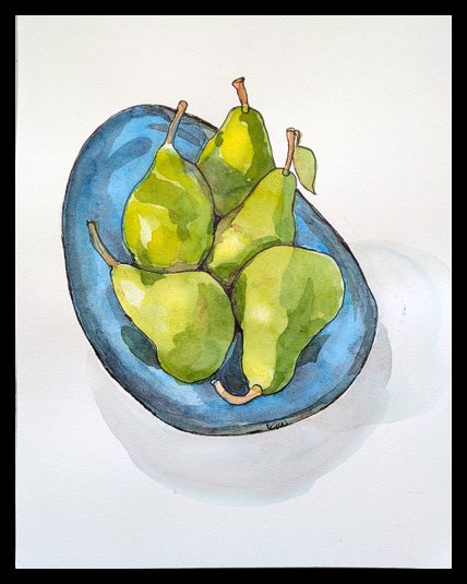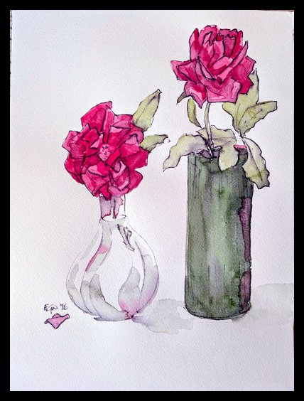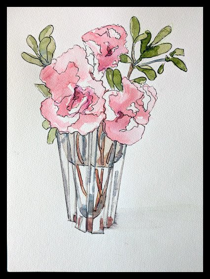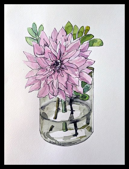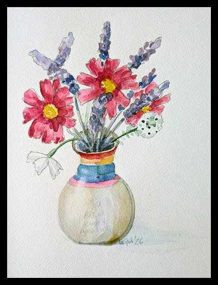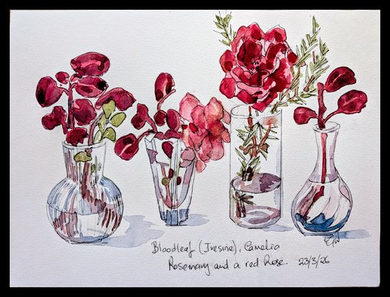 In March 2026 I got the flu. To keep myself entertained while convalescing I drew watercolour and ink sketches of flowers and fruit on 32x24cm paper.