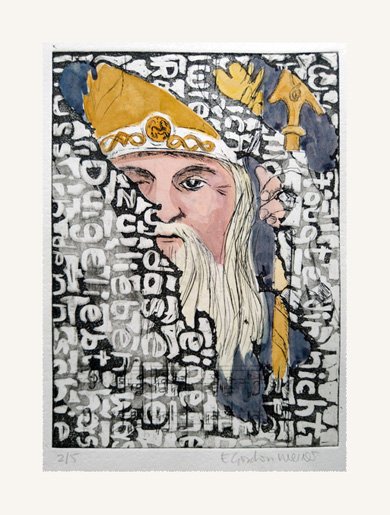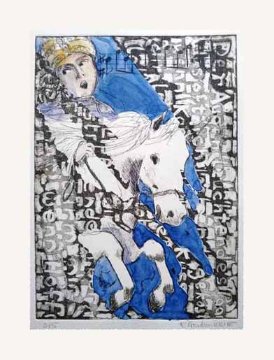 Intaglio Etchings, hand coloured, featuring people and places from Wagner’s Ring Cycle Operas. The lettering is taken from the opera librettos. These etchings are 21 x 15 cm and suitable for a 30×40 cm frame. They can be provided framed or unframed.